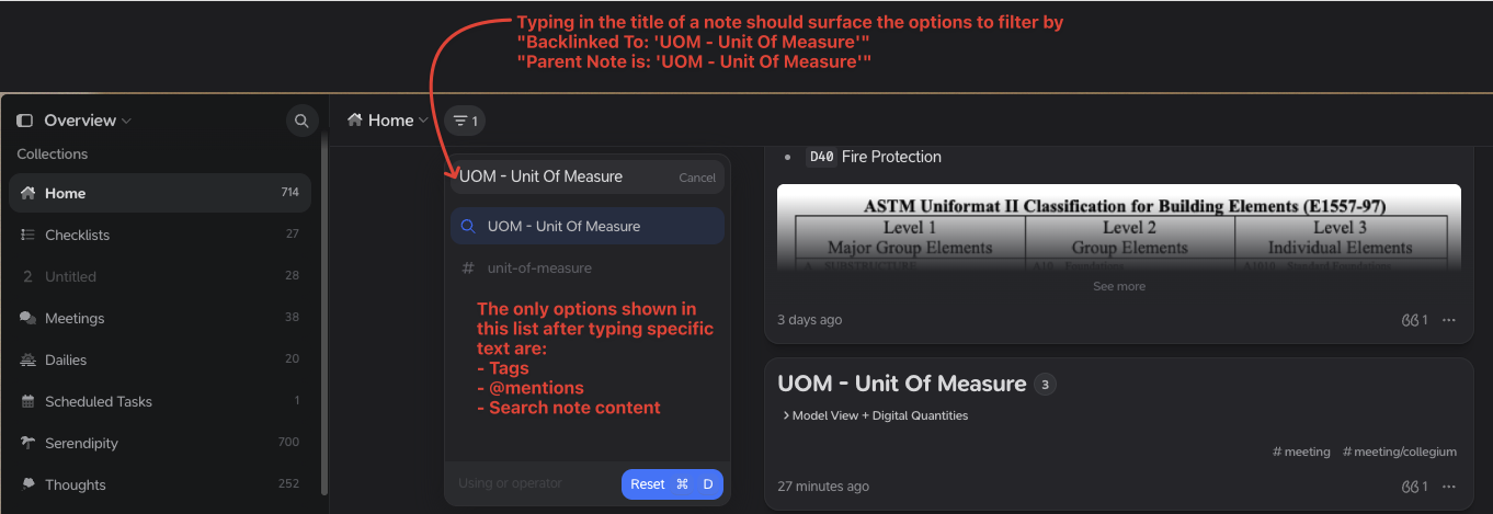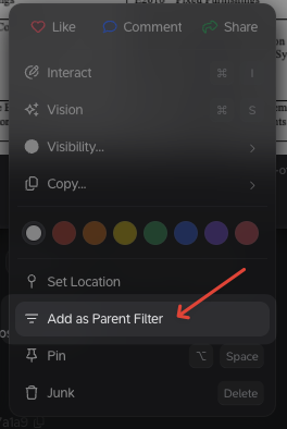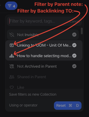 - I believe this filter is only accessible via the “context menu” when clicked on either the preview note or in outline.