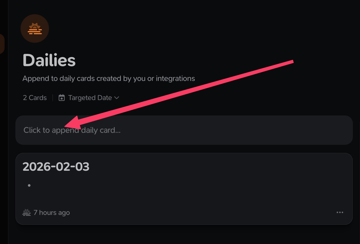 But today, when I appended to my daily card using the Raycast integration, it has created another card with the same title: 2026-02-03
