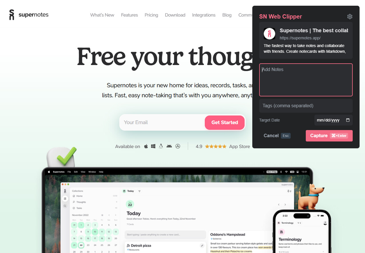 Hi @tomaxapp, I’m stumbling across your web clipper long after its debut. I tried the Chrome Store version and it worked pretty well. Thanks to you posting it on GitHub and my playing around with Claude, I added tags and target date support. Plus, you can now edit the title, url, description, and notes before sending it to Supernotes. And @antonello23 the gear icon now opens the Settings page. I emailed Tomax via the Chrome Store address on file, but Gmail wouldn’t let me send the code via zip files. Let me know how I can share the Claude-revised version with you, Connor, or Tobias if anyone is interested. I currently load it as an unpacked extension via the developer mode in Chrome and it works great. See screenshot below. All the fields are editable and it gets sent to Supernotes via the API. Hopefully you, Connor, or Tobias can review it in case Claude introduced some security issue, but at least for now this works great as a web clipper. Thanks, Bob
